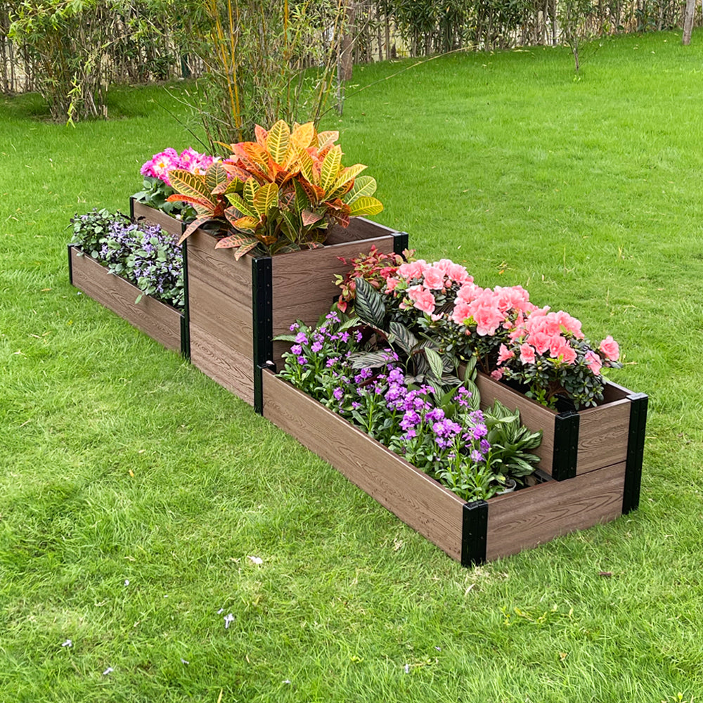 Providing extra height and visual interest, our premium quality garden bed R212421 is perfect for growing vegetables, flowers and herbs. The composite wood plastic boards and heavy-duty steel post brackets ensure a strong and durable structure that can last in outdoor conditions for up to a decade. Attached with 2 sets of R0714C4524, you can make up various shapes and forms of garden beds to enlighten your garden.