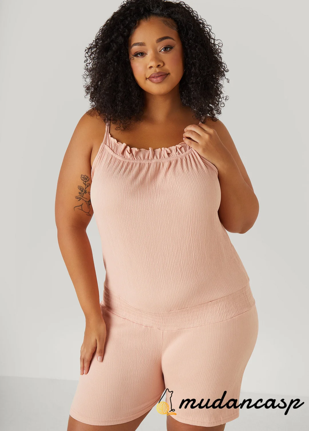 Cute enough to lounge all day, comfy enough to snooze all night. This textured sleep romper from Love To Sleep features ruffled trims, adjustable straps and a shirred waistband for that just-right fit.